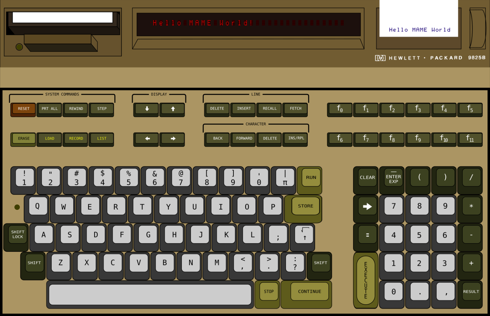 mame hp9825t -rompath <whatever> -rom1 mass2 -slot0 98034_hpib -slot0:98034_hpib:ieee_dev hp9895 -flop1 9825_tests.mfi -bitb1 prt_1.txt -bitb2 prt_2.txt